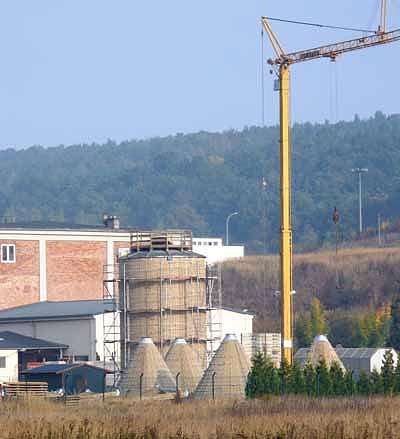 Bild 2: Ein Silo, noch nicht fertiggestellt, und die Füllkegel.