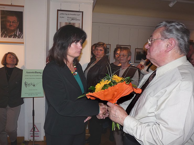 In ihrer ersten Ausstellungskonzeption hat Kristin Gläser mit viel Engagement und sehr akribisch das Wirken des Chor in den 40 Jahren dargestellt. Die Madrigalisten gaben Konzerten in 48 Städten und Gemeinden und das mehrfach. Dabei trat man bisher 652 als Chor auf. Bei den Madrigalisten waren über die Jahre 115 Chorsänger aktiv tätig, aber nur Heinz Unger war von Anfang an dabei. Auch wenn Heinz Unger nur noch Chorsänger ist, aktueller Chorleiter ist Prof. Eckart Lange, so hat Heinz Unger die künstlerische Leitung seit der Gründung inne. Der Glückwunsch von Heinz Unger dürfte da für Kristin Gläser Ansporn sein, weiter auf dem Gebiet wirksam zu werden.