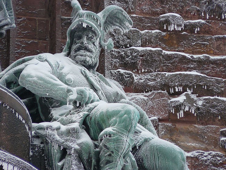 Jetzt hat eine unabhängige Jury um Barbara Mäder (Foto-Görtz), Wilhelm Slodczyk (Fotojournalist) und Peter Möbius (Stadtverwaltung Bad Frankenhausen) die schönsten Aufnahmen ausgesucht. Über den Hauptpreis, ein Wochenende für 2 Personen, gesponsert vom Hotel Residenz Bad Frankenhausen, darf sich jetzt Maik Steuernagel aus Zwickau freuen. Sein Bild (oben) zeigt den weiß gekleideten und mit Eiszapfen gepiercten germanischen Krieger zu Füßen des Reiterstandbildes von Kaiser Wilhelm I.