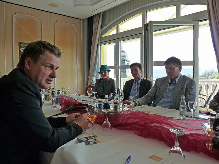 Mit der Benefiz Gourmet Gala am 5. Mai 2011 im Achteckhaus von Schloss Sondershausen beginnt eine neue Veranstaltungsreihe zugunsten regionaler Bauwerke. Das man sich heute im Hotel "Residenz" in Bad Frankenhausen traf, war dabei kein Zufall. Bernd Jurke (2. v. r) und der Geschäftsführer und Sternekoch Ralf Kronmüller (re.) erläuterten mit dem schiefen Turm der Oberkirche, zu wessen Gunsten die diesjährige Gala stattfinden soll. In diesem Jahr wird aus aktuellem Anlass die Oberkirche Bad Frankenhausen mit den Spendenerlösen der Gala bedacht, im nächsten Jahr soll ein Baudenkmal von der Benefiz-Gala profitieren.
